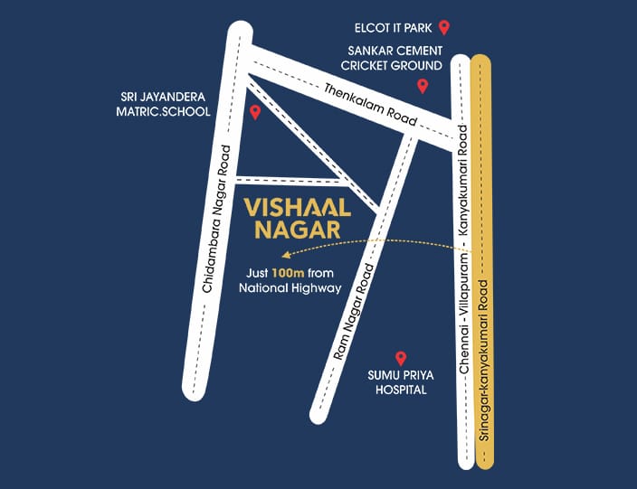 An enchanting confluence of nature where the dream meets reality, a luxurious lifestyle unfolds over 16.4 acres of premium villa plots in a gated community. With breathtaking panoramic views of nature and an engaging landscape, Vishaal Nagar is a lifestyle experience that needs to be seen and felt to be truly believed.